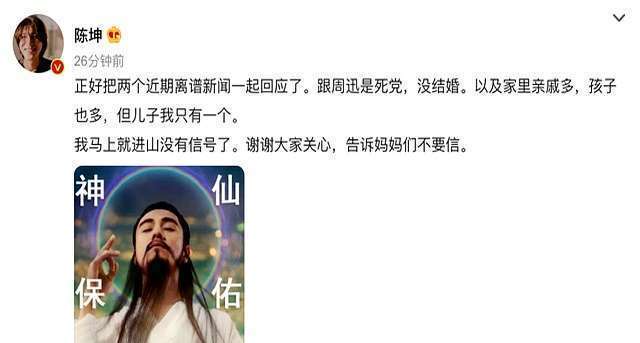 况且,陈坤这东谈主,三不雅也挺正。之前传他和周迅成婚,他立马出来辟谣,说东谈主家是“相知”。还有益强调“女儿我唯唯一个”,这回报,干脆利落,没啥妄言。
